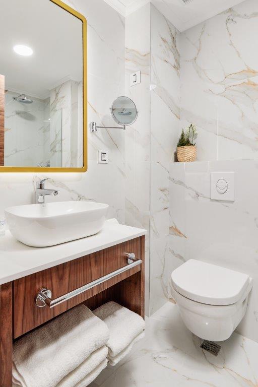 All rooms are characterized by elegance, sophistication and comfort, which clearly reflects their design. The size of each room is 24m2, and the type of bed in the room is a King size bed with dimensions 180 × 210. Rooms are equipped with a minibar and safe. Free WiFi is available throughout the property.